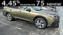 North Park Mazda is pleased to offer this gorgeous 2022 Subaru Outback Limited. Well equipped with Power Moonroof & HSW & Navigation System (DriverFocus (Driver Monitoring System), Heated Steering Wheel, Power Moonroof, and Radio: Subaru STARLINK 11.6" Multimedia Nav System), Tech Package 2 (Auto-Dimming Exterior Mirror w/Approach Light, Dome Light LED Upgrade, Wireless Charger, and Woodgrain Interior Trim Kit), 12 Speakers, 3.90 Axle Ratio, 4-Wheel Disc Brakes, ABS brakes, Air Conditioning, Alloy wheels, AM/FM radio: SiriusXM, Auto High-beam Headlights, Auto-dimming Rear-View mirror, Automatic temperature control, Autumn Green Metallic Body Side Molding, Autumn Green Metallic Door Edge Guards, Brake assist, Bumpers: body-color, Compass, Driver door bin, Driver vanity mirror, Dual front impact airbags, Dual front side impact airbags, Electronic Stability Control, Emergency communication system: STARLINK Safety and Security (Subscription Required), Exterior Parking Camera Rear, Four wheel independent suspension, Front anti-roll bar, Front Bucket Seats, Front Center Armrest w/Storage, Front dual zone A/C, Front fog lights, Front reading lights, Fully automatic headlights, Garage door transmitter: HomeLink, harman/kardon Speakers, Heated door mirrors, Heated Front Bucket Seats, Heated front seats, Heated rear seats, Illuminated entry, Knee airbag, Leather steering wheel, Low tire pressure warning, Memory seat, Occupant sensing airbag, Outside temperature display, Overhead airbag, Overhead console, Panic alarm, Passenger door bin, Passenger vanity mirror, Perforated Leather-Trimmed Upholstery, Power door mirrors, Power driver seat, Power Liftgate, Power passenger seat, Power steering, Power windows, Radio: Subaru STARLINK 11.6" Multimedia Plus Sys, Rear anti-roll bar, Rear seat center armrest, Rear window defroster, Rear window wiper, Remote keyless entry, Roof rack, Security system, Speed control, Speed-sensing steering, Split folding rear seat, Spoiler, STARLINK/Apple CarPlay/Android Auto, Steering wheel mounted audio controls, Steering Wheel Paddle Shift Control Switches, Tachometer, Telescoping steering wheel, Tilt steering wheel, Traction control, Trailer Hitch, Trip computer, Turn signal indicator mirrors, Variably intermittent wipers, and Wheels: 18" x 7J Black Aluminum Alloy.